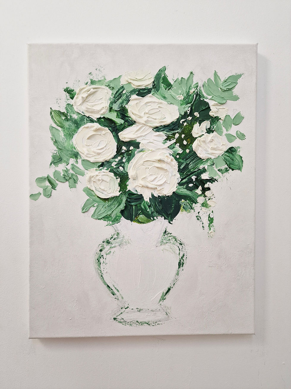 "Blanco" 18x24 Impasto Botanical Artwork on Canvas